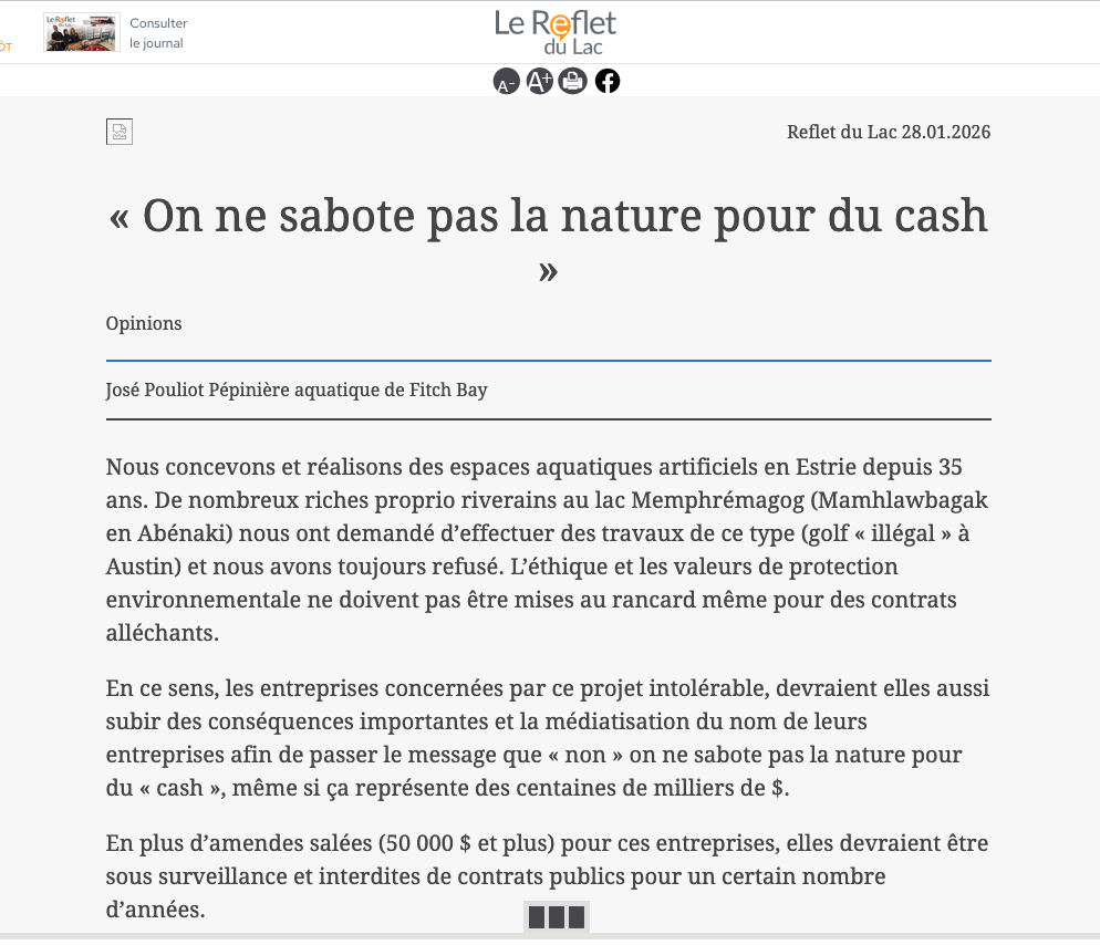 Une lettre d'opinion envoyé à tous les niveaux gouvernementaux